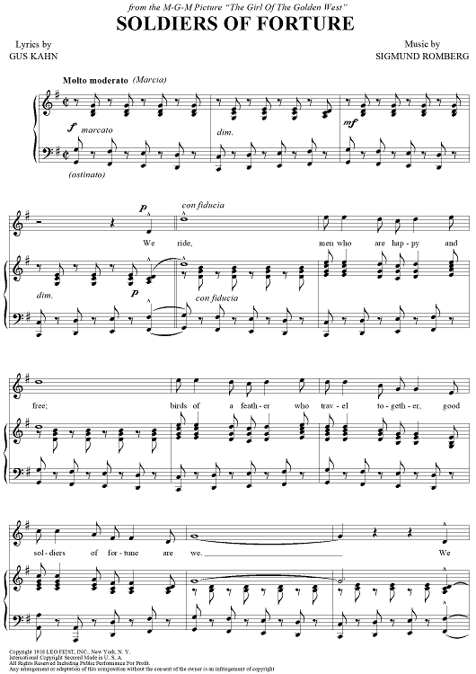 Digital Sheet Music for Soldiers Of Fortune by Gus Kahn, Sigmund Romberg, Nelson Eddy scored for Piano/Vocal; id:428687