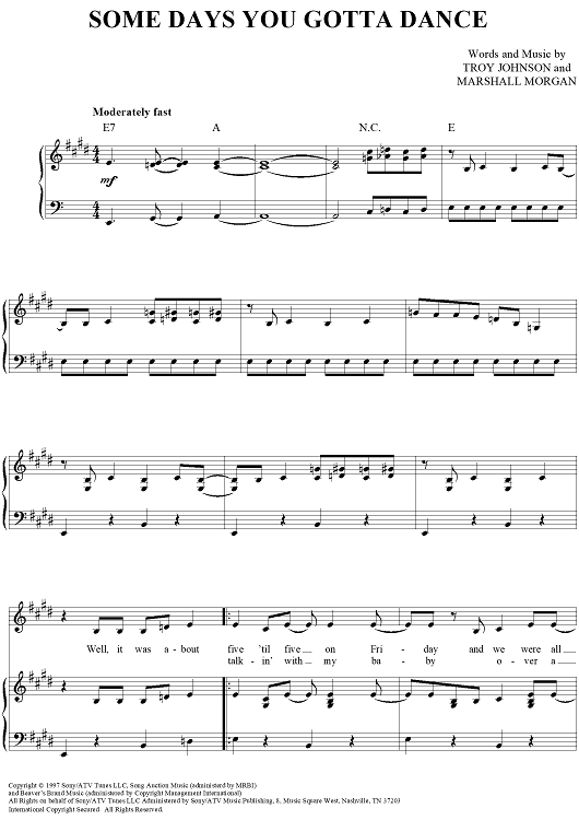 Digital Sheet Music for Some Days You Gotta Dance by The Chicks, Troy Johnson, Marshall Morgan scored for Piano/Vocal/Chords; id:365437
