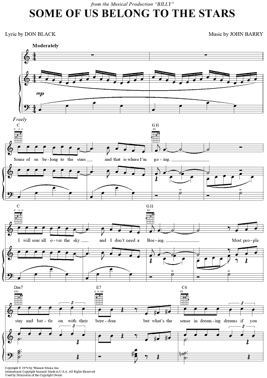 Digital Sheet Music for Some of Us Belong to the Stars by John Barry, Don Black scored for Piano/Vocal/Chords; id:366160