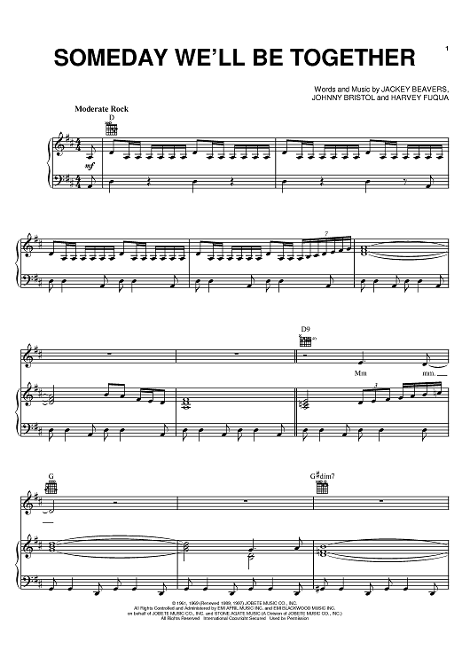 Digital Sheet Music for Someday We'll Be Together by Diana Ross, Harvey Fuqua, The Supremes, Jackey Beavers, Johnny Bristol scored for Piano/Vocal/Chords; id:370537