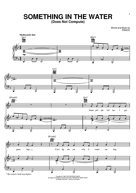 "Something In The Water (Does Not Compute)" Sheet Music by Prince