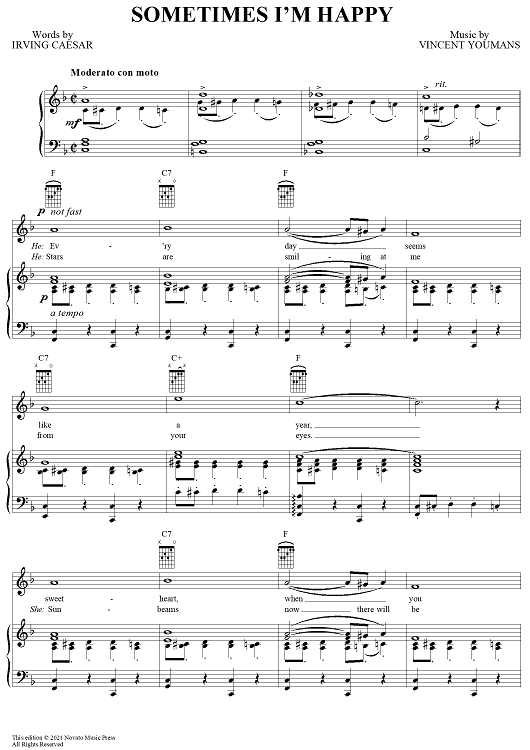 "Sometimes I'm Happy" Sheet Music by Vincent Youmans