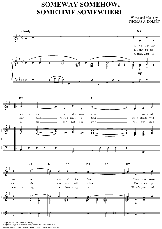 Digital Sheet Music for Someway Somehow, Sometime Somewhere by Thomas A. Dorsey scored for Piano/Vocal/Chords; id:363253