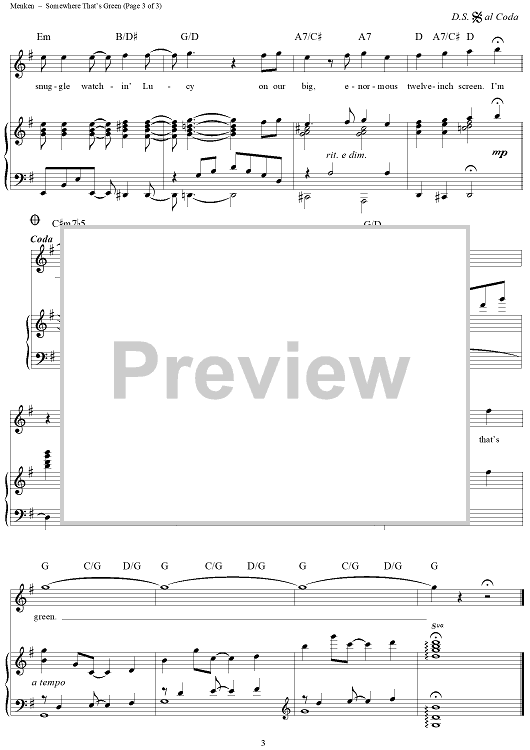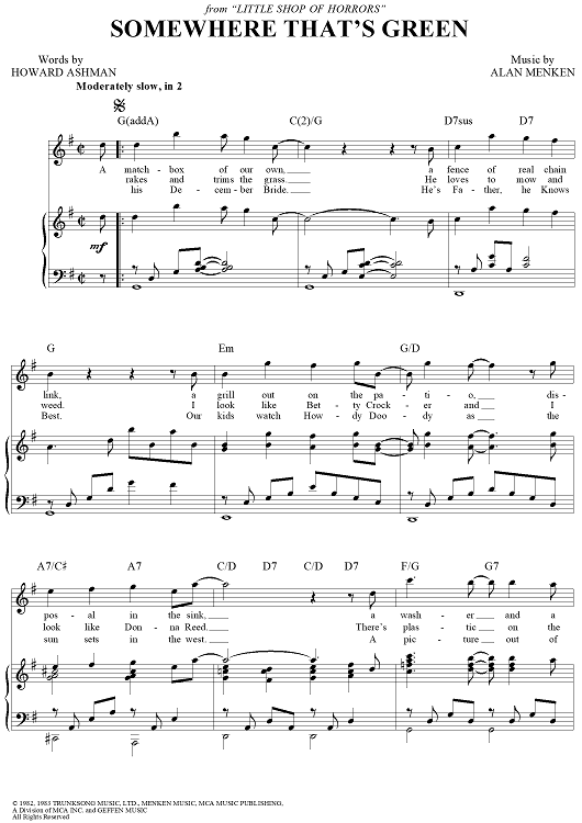 Digital Sheet Music for Somewhere That's Green by Alan Menken, Howard Ashman scored for Piano/Vocal/Chords; id:113003