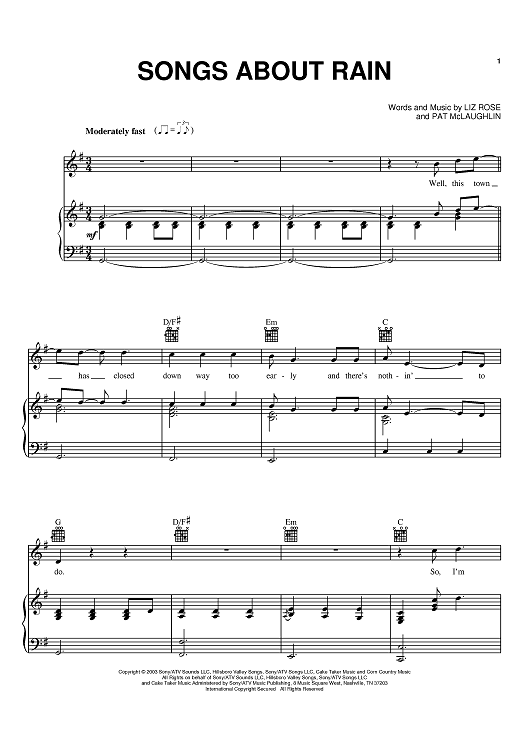 Digital Sheet Music for Songs About Rain by Gary Allan, Pat McLaughlin, Liz Rose scored for Piano/Vocal/Chords; id:373524