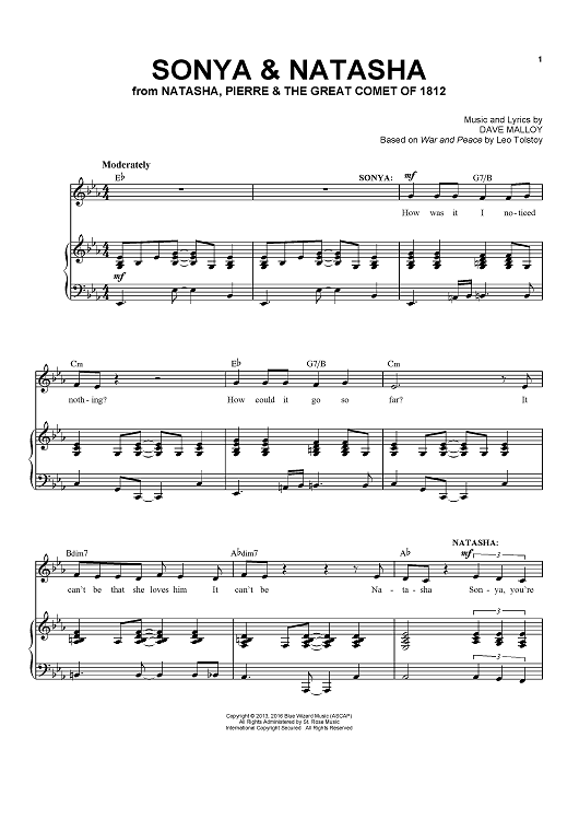 Digital Sheet Music for Sonya & Natasha - from Natasha, Pierre & The Great Comet of 1812 by Dave Malloy scored for Piano/Vocal/Chords; id:464807