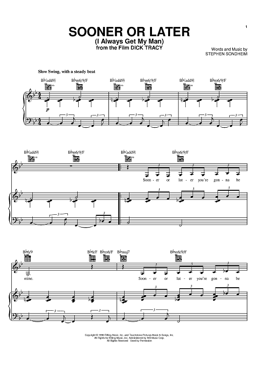 Digital Sheet Music for Sooner Or Later (I Always Get My Man) by Stephen Sondheim scored for Piano/Vocal/Chords; id:375415