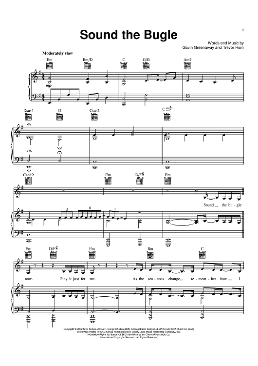 Digital Sheet Music for Sound The Bugle by Trevor Horn, Gavin Greenaway scored for Piano/Vocal/Chords; id:370398
