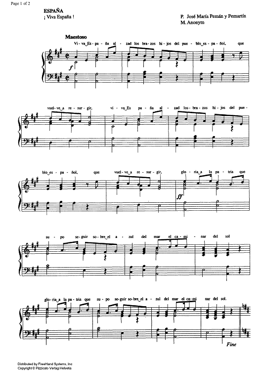 "Spain - Viva Espana!" Sheet Music by Unknown Writer