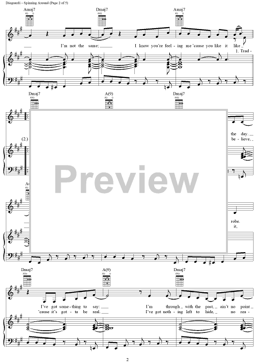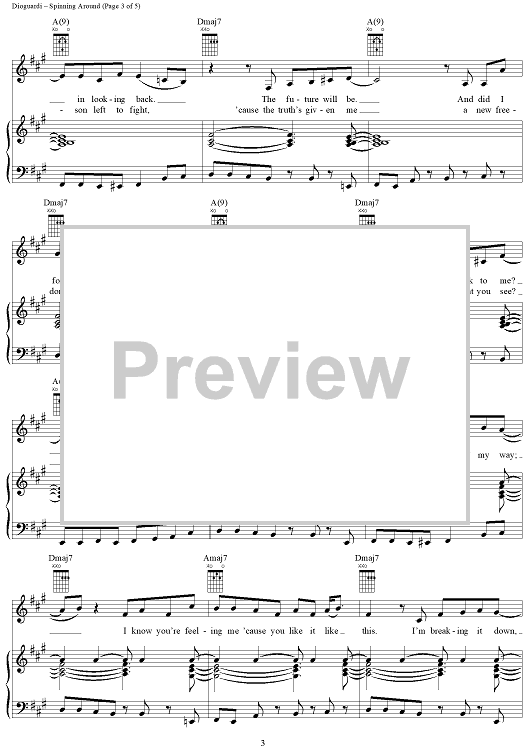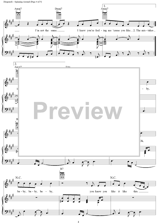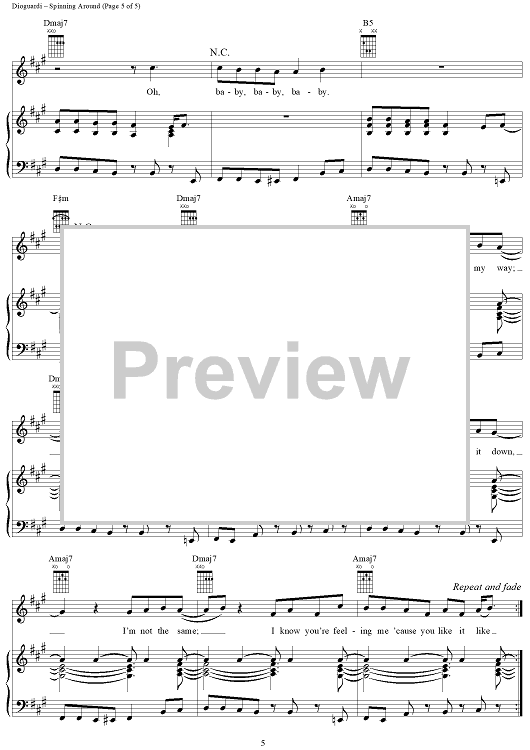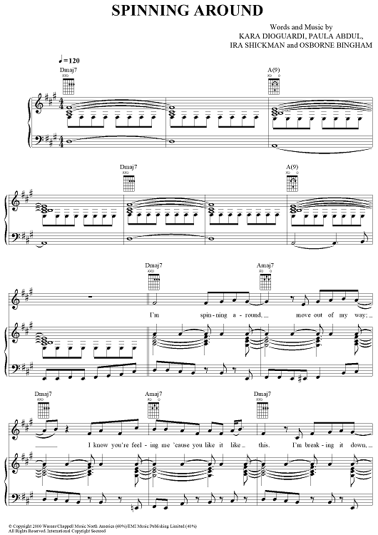 Digital Sheet Music for Spinning Around by Kylie Minogue, Paula Abdul, Kara DioGuardi, Ira Shickman, Osborne Bingham scored for Piano/Vocal/Chords; id:366886
