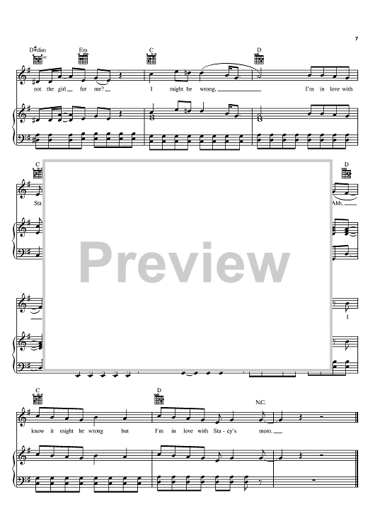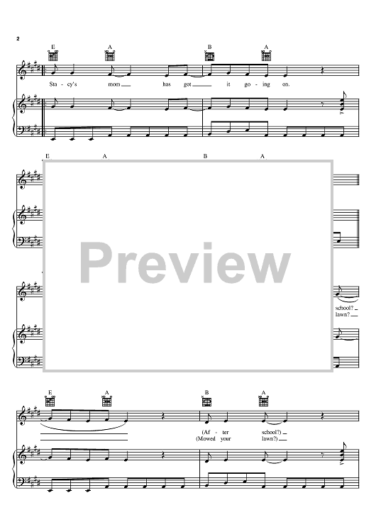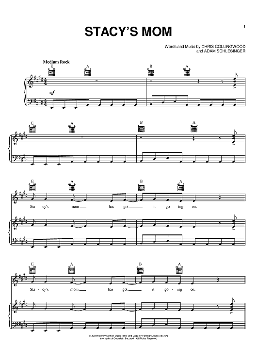 Digital Sheet Music for Stacy's Mom by Adam Schlesinger, Chris Collingwood, Fountains of Wayne scored for Piano/Vocal/Chords; id:374071