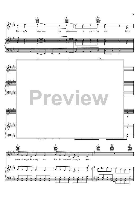 "Stacy's Mom" Sheet Music by Fountains of Wayne