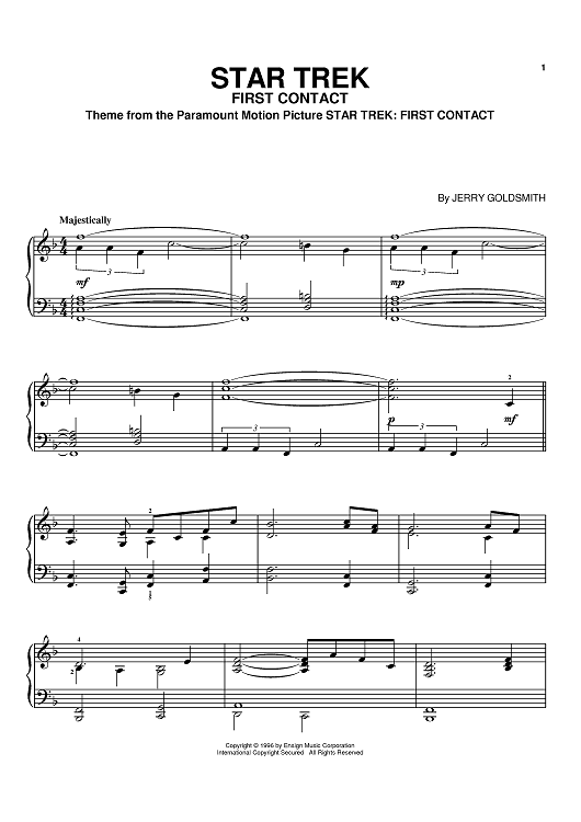 Digital Sheet Music for Star Trek(R) First Contact by Jerry Goldsmith scored for Piano; id:367817