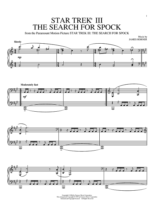 Digital Sheet Music for Star Trek(R) III - The Search For Spock by James Horner scored for Piano; id:368175