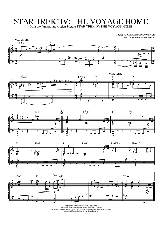 Digital Sheet Music for Star Trek(R) IV - The Voyage Home by Leonard Rosenman, Alexander Courage scored for Piano; id:368177