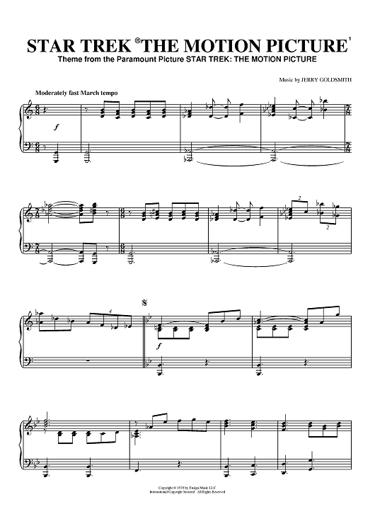 Digital Sheet Music for Star Trek(R) The Motion Picture by Jerry Goldsmith scored for Piano; id:389873