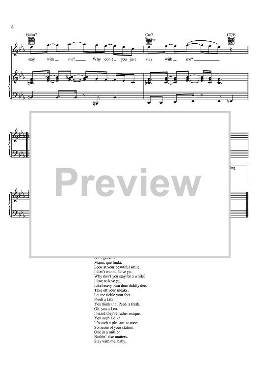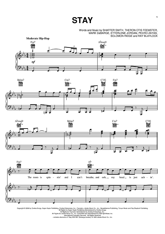 Digital Sheet Music for Stay by Etterlene Jordan, Ne-Yo, Ray Blaylock, Mark Debarge, Neff-U, Solomon Ridge, Pedro Zayas scored for Piano/Vocal/Chords; id:393560