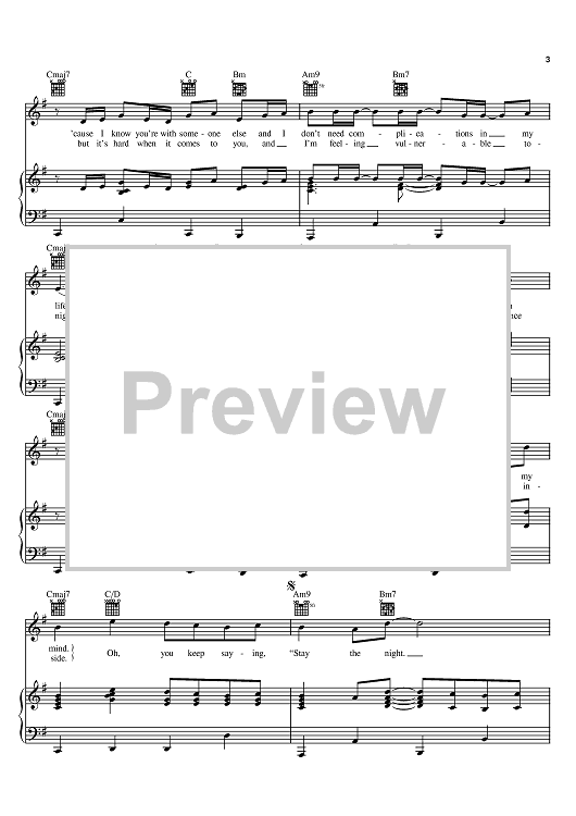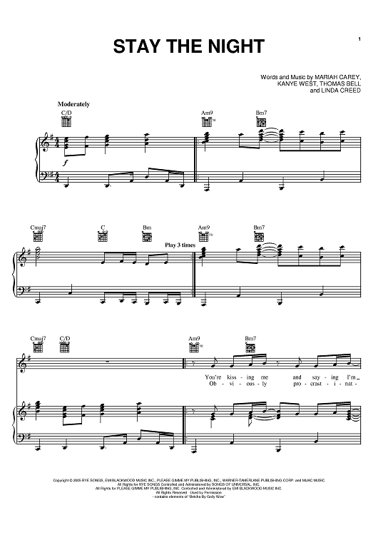 Digital Sheet Music for Stay The Night by Linda Creed, Mariah Carey, Thom Bell, Kanye West scored for Piano/Vocal/Chords; id:386422