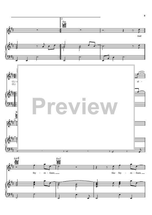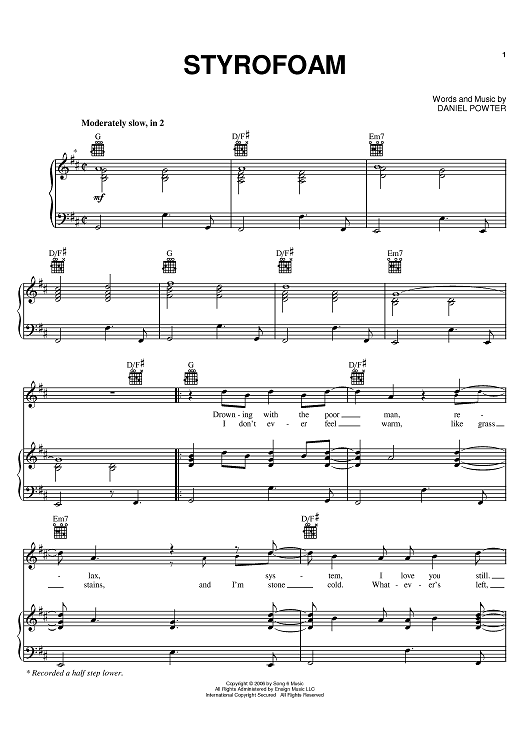 Digital Sheet Music for Styrofoam by Daniel Robert Powter scored for Piano/Vocal/Chords; id:393051
