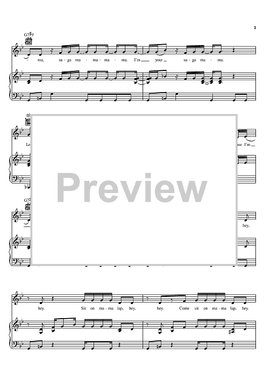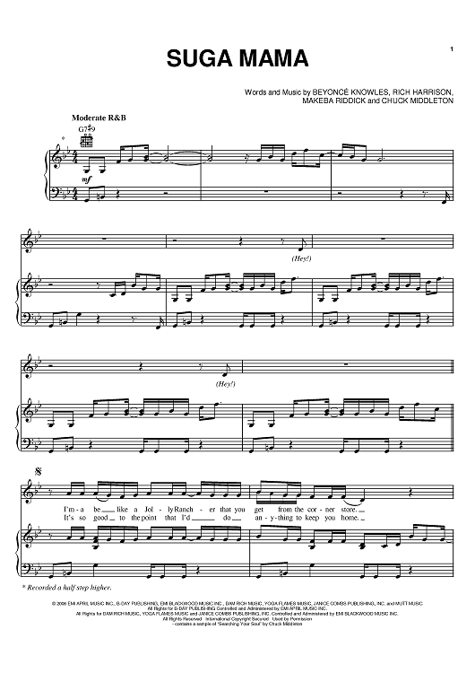 Digital Sheet Music for Suga Mama by Beyonce, Rich Harrison, Chuck Middleton, Makeba Riddick scored for Piano/Vocal/Chords; id:396329