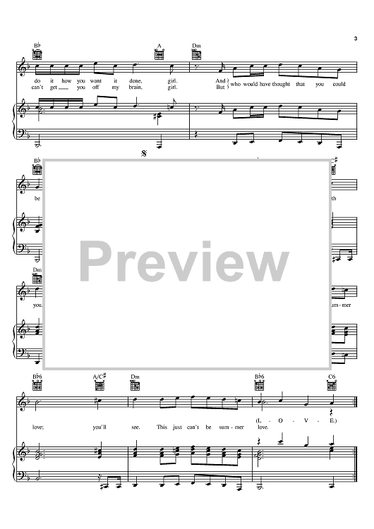 Digital Sheet Music for Summer Love (Set The Mood Prelude) by Tim Mosley, Nate Hills, Justin Timberlake scored for Piano/Vocal/Chords; id:395810