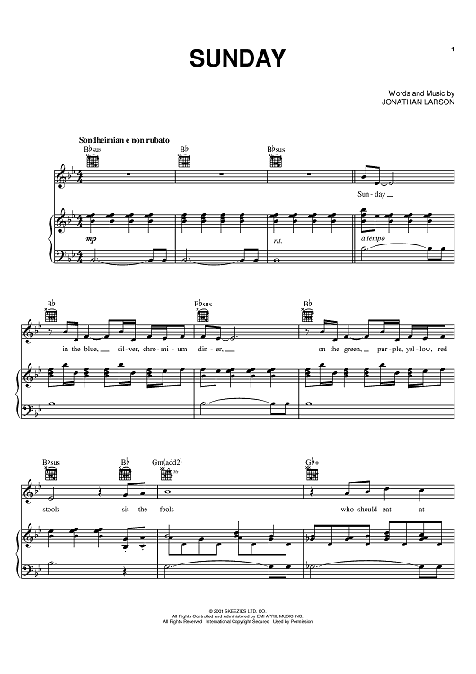 Digital Sheet Music for Sunday by Jonathan Larson scored for Piano/Vocal/Chords; id:374588