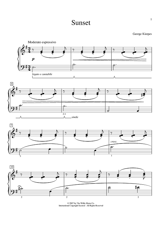 Digital Sheet Music for Sunset by George Kiorpes scored for Piano; id:396158