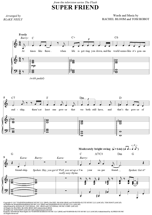 Digital Sheet Music for Super Friend - from The Flash by Blake Neely, Rachel Bloom, Tom Robot scored for Piano/Vocal/Chords; id:464096