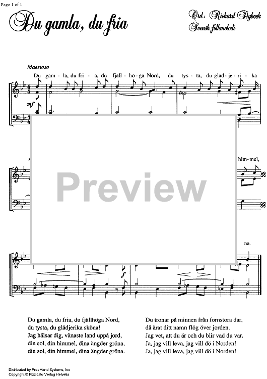 Digital Sheet Music for Sweden - Du Gamla, du Fria by Unknown Writer, Roberto Cittadini scored for Piano/Vocal; id:328996