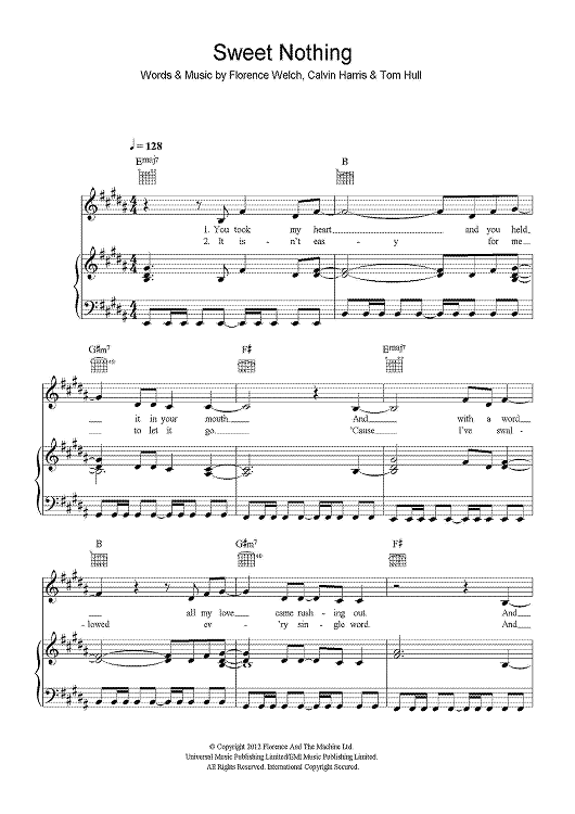 Digital Sheet Music for Sweet Nothing by Florence Welch, Calvin Harris, Tom Hull scored for Piano/Vocal/Chords; id:434457