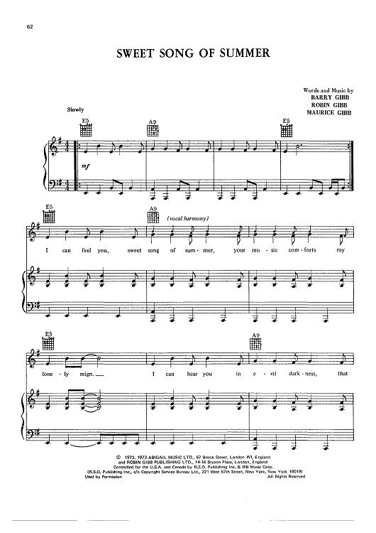 "Sweet Song Of Summer" Sheet Music by Bee Gees