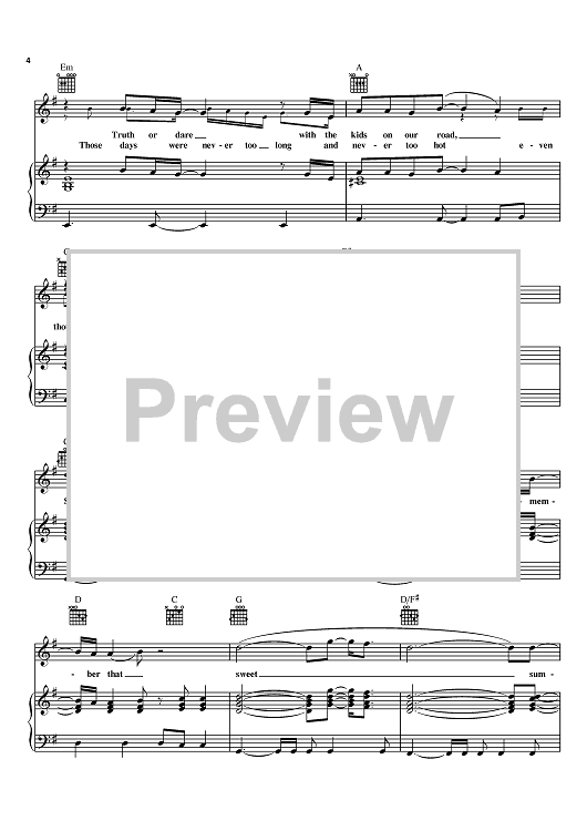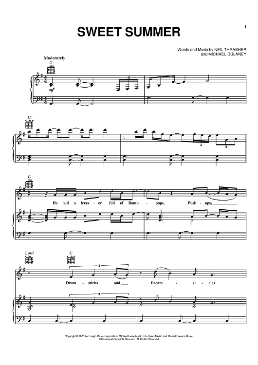 Digital Sheet Music for Sweet Summer by Michael Dulaney, Neil Thrasher, Diamond Rio scored for Piano/Vocal/Chords; id:368540