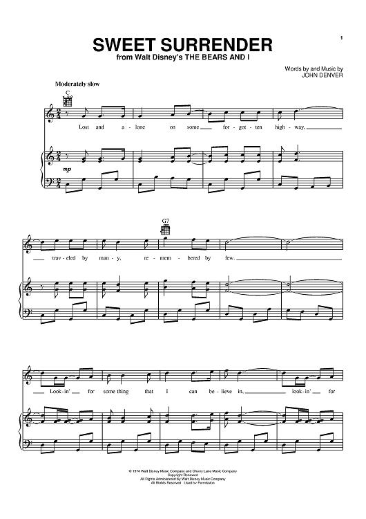 Digital Sheet Music for Sweet Surrender by John Denver scored for Piano/Vocal/Chords; id:393838