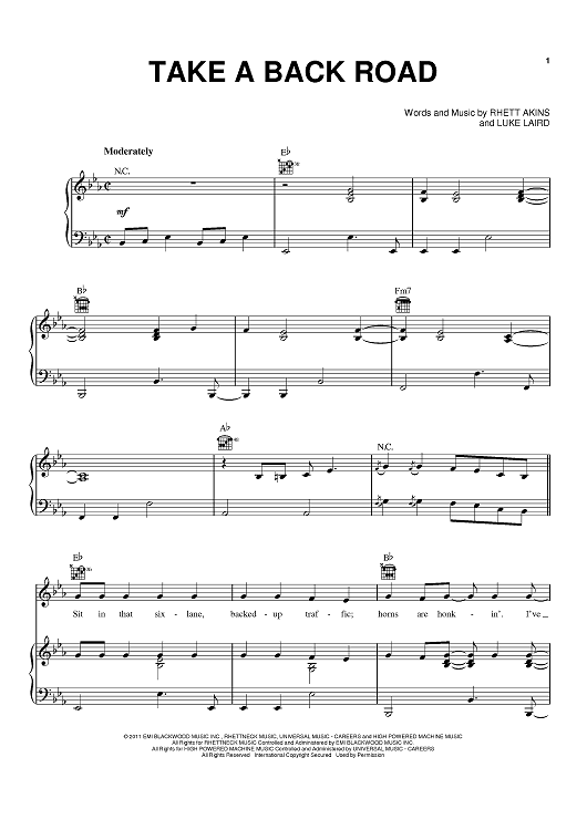Digital Sheet Music for Take A Back Road by Rhett Akins, Luke Laird, Rodney Atkins scored for Piano/Vocal/Chords; id:428755