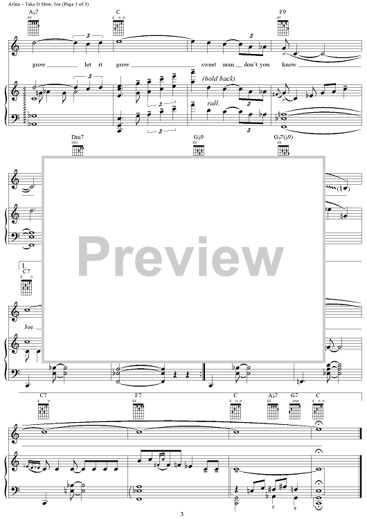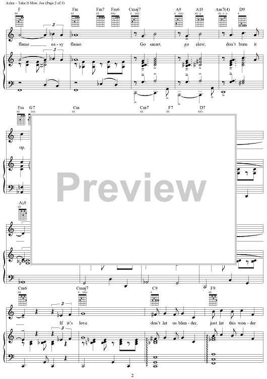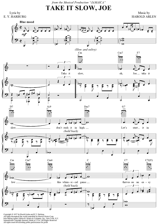 Digital Sheet Music for Take It Slow, Joe by Harold Arlen, E.Y. "Yip" Harburg scored for Piano/Vocal/Chords; id:366044
