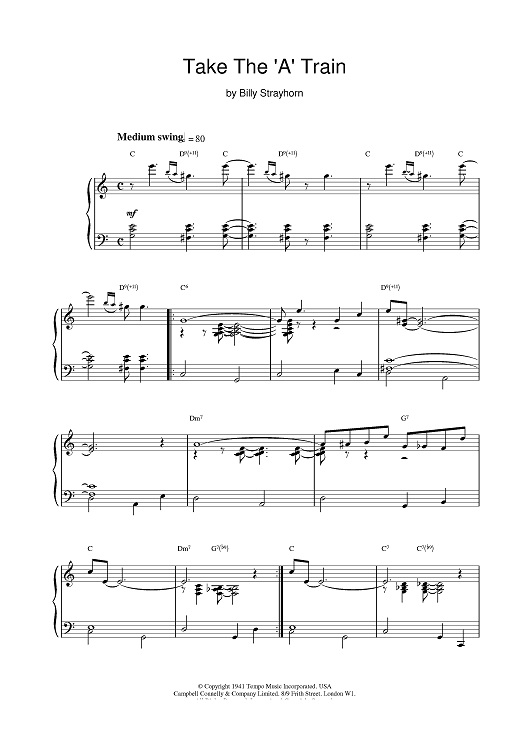 "Take The 'A' Train" Sheet Music by Billy Strayhorn