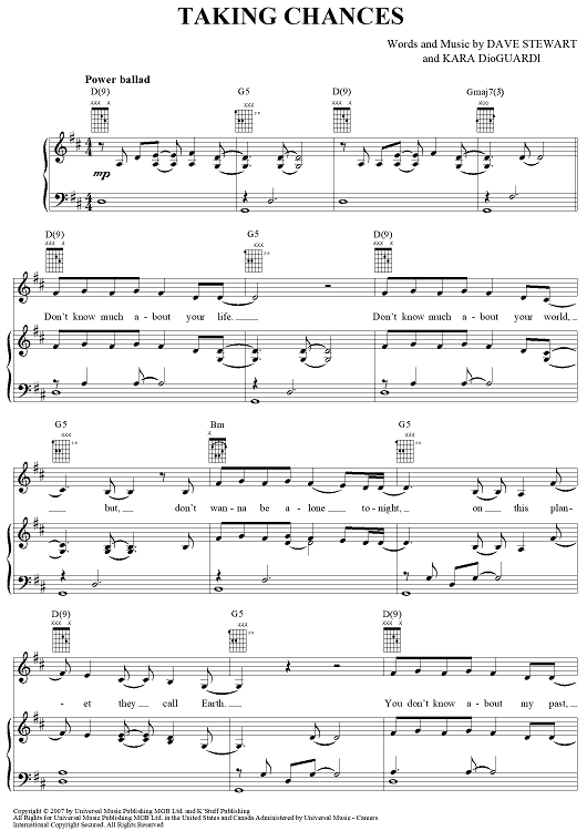 Digital Sheet Music for Taking Chances by Celine Dion, Dave Stewart, Kara DioGuardi scored for Piano/Vocal/Chords; id:366974