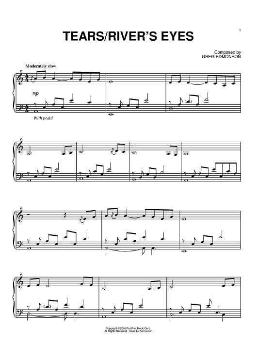 "Tears/River's Eyes" Sheet Music by Greg Edmonson