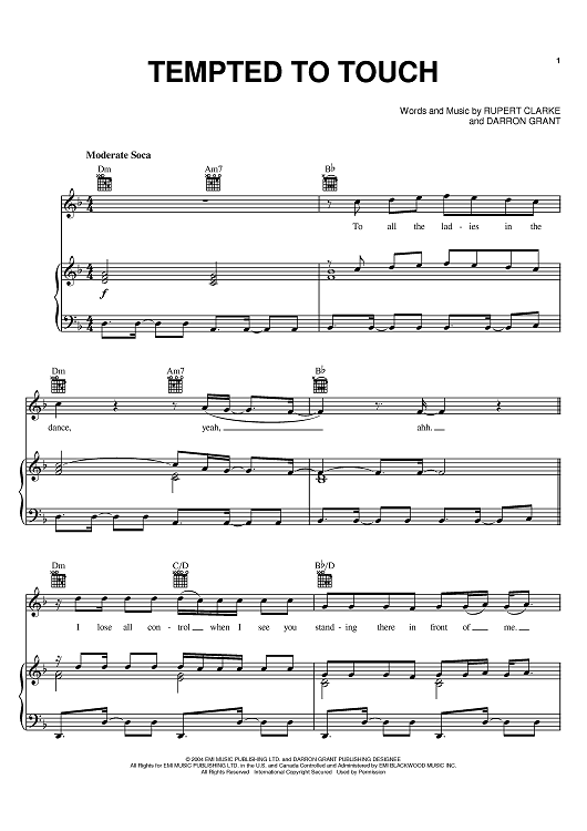 Digital Sheet Music for Tempted To Touch by Rupert Clarke, Darron Grant, Rupee scored for Piano/Vocal/Chords; id:380638