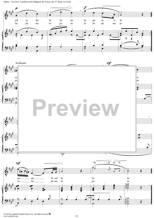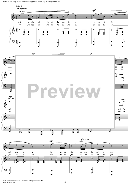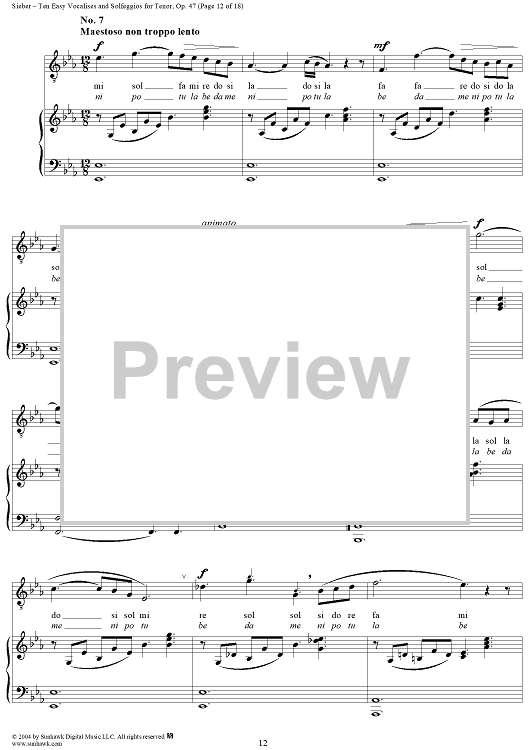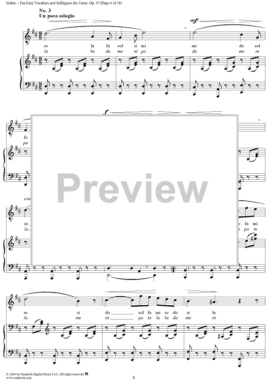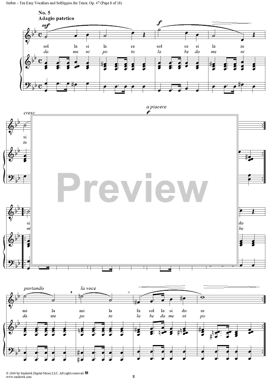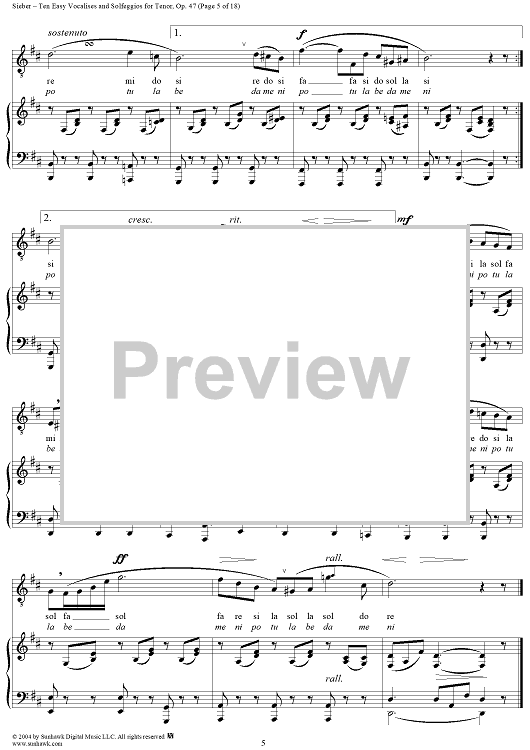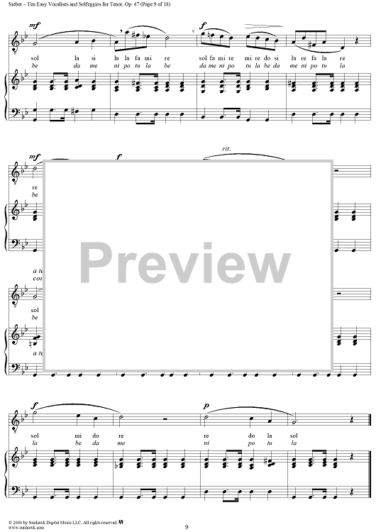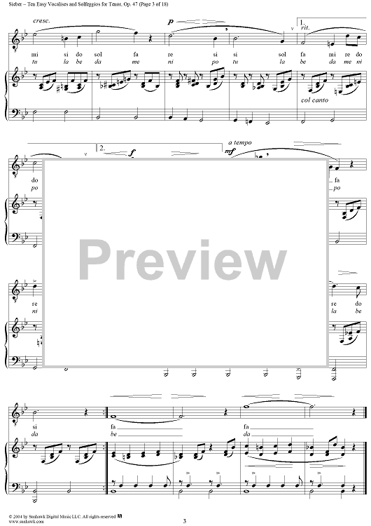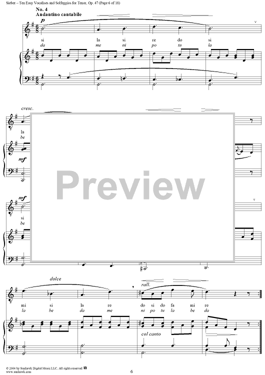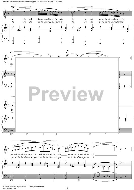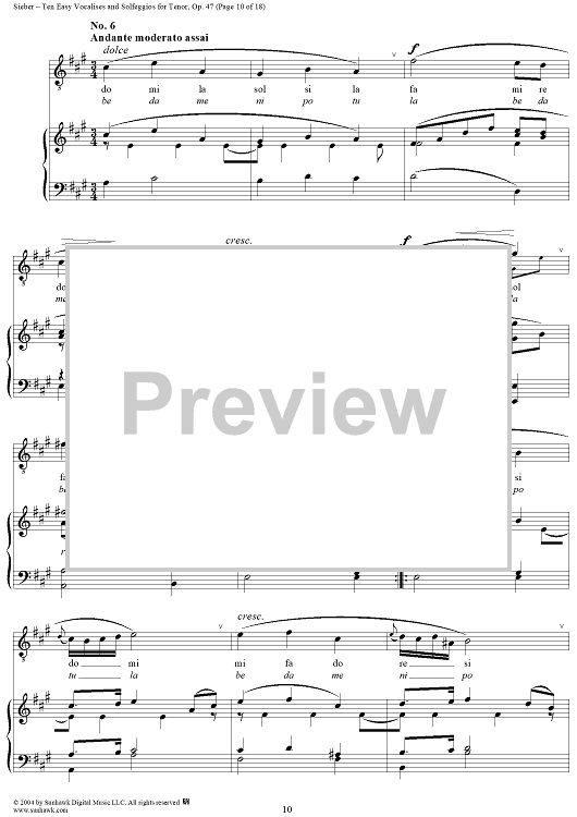 Digital Sheet Music for Ten Easy Vocalises and Solfeggios for Tenor, Op. 47 by Ferdinand Sieber scored for Vocal Method (Voice and Piano); id:296380