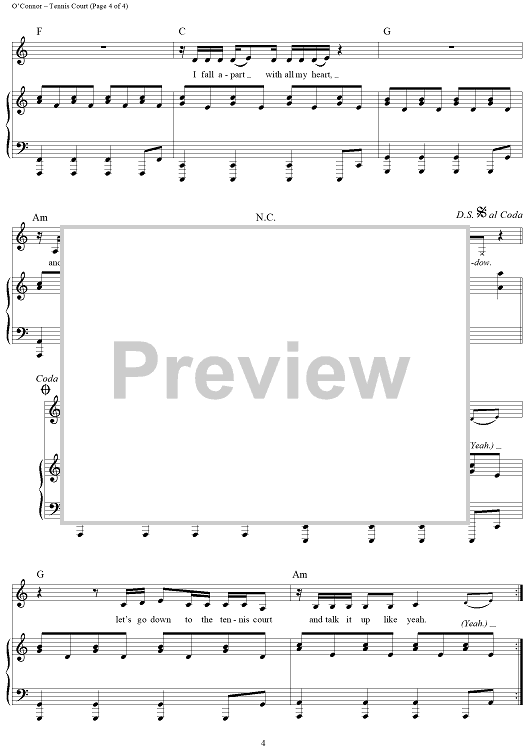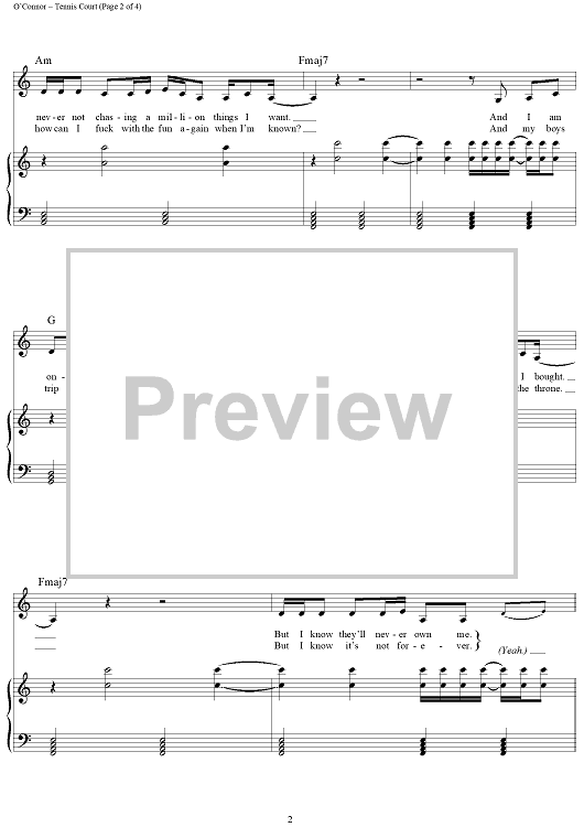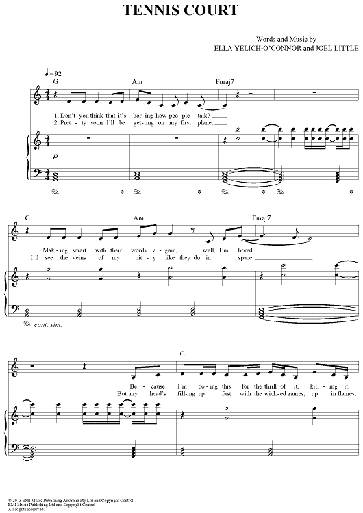 Digital Sheet Music for Tennis Court by Lorde, Joel Little, Ella Yelich-O'Connor scored for Piano/Vocal/Chords; id:438035
