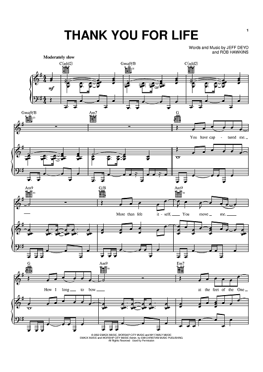 "Thank You For Life" Sheet Music by Jeff Deyo