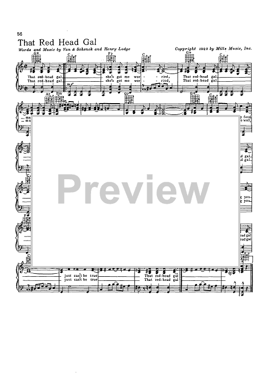 Digital Sheet Music for That Red Head Gal by Henry Lodge, Van & Schenck scored for Piano/Vocal/Chords; id:423271