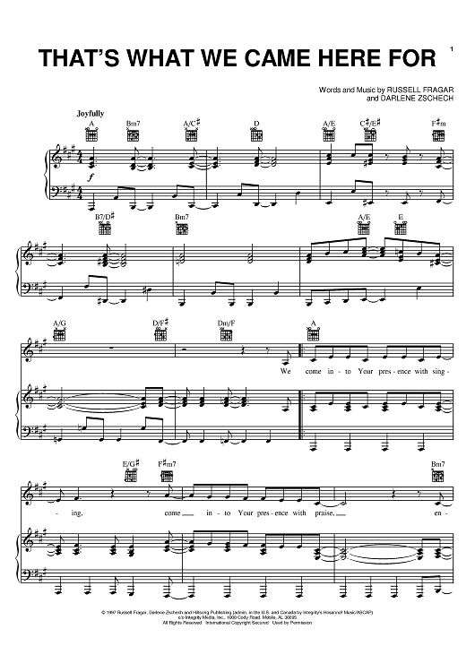 Digital Sheet Music for That's What We Came Here For by Darlene Zschech, Russell Fragar scored for Piano/Vocal/Chords; id:384287