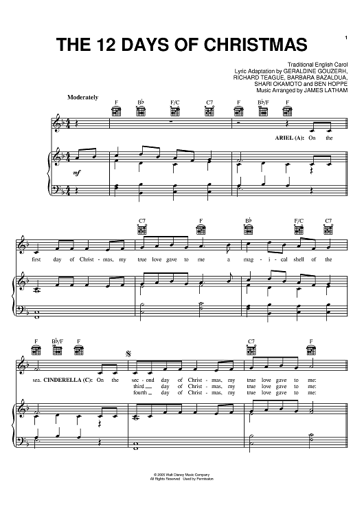 Digital Sheet Music for The 12 Days Of Christmas by Barbara Bazaldua, Geraldine Gouzerh, Ben Hoppe, James Latham, Shari Okamoto, Richard Teague scored for Piano/Vocal/Chords; id:387369