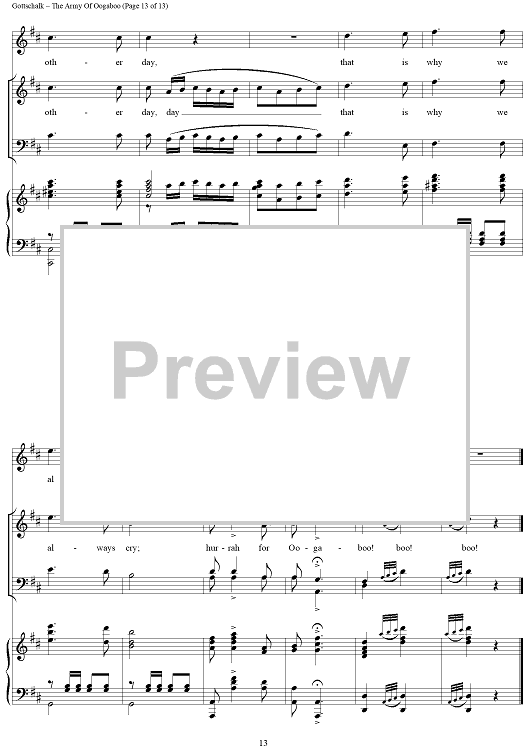 "The Army of Oogaboo" Sheet Music by Louis F. Gottschalk