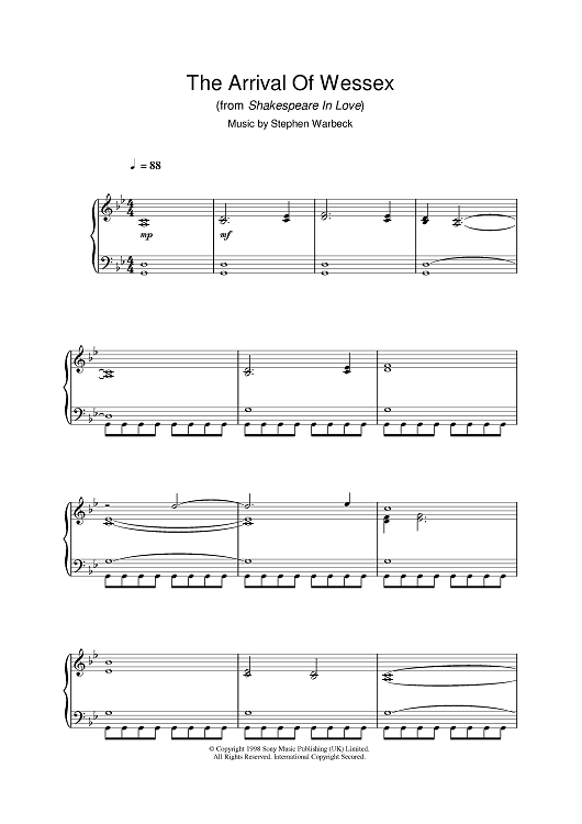 Digital Sheet Music for The Arrival Of Wessex by Stephen Warbeck scored for Piano; id:398147