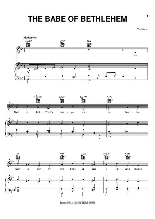 Digital Sheet Music for The Babe Of Bethlehem by scored for Piano/Vocal/Chords; id:398017