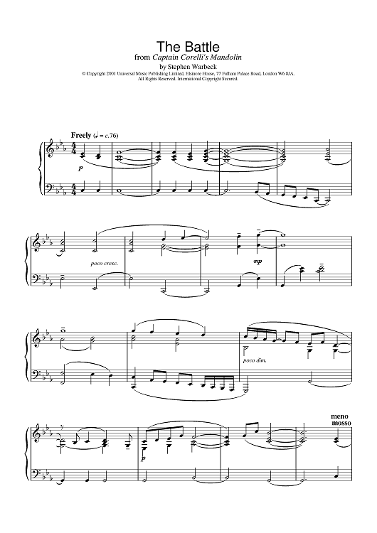 Digital Sheet Music for The Battle by Stephen Warbeck scored for Piano; id:377476