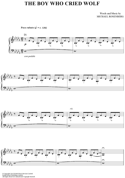 Digital Sheet Music for The Boy Who Cried Wolf by Michael Rosenberg, Passenger scored for Piano/Vocal/Chords; id:465516